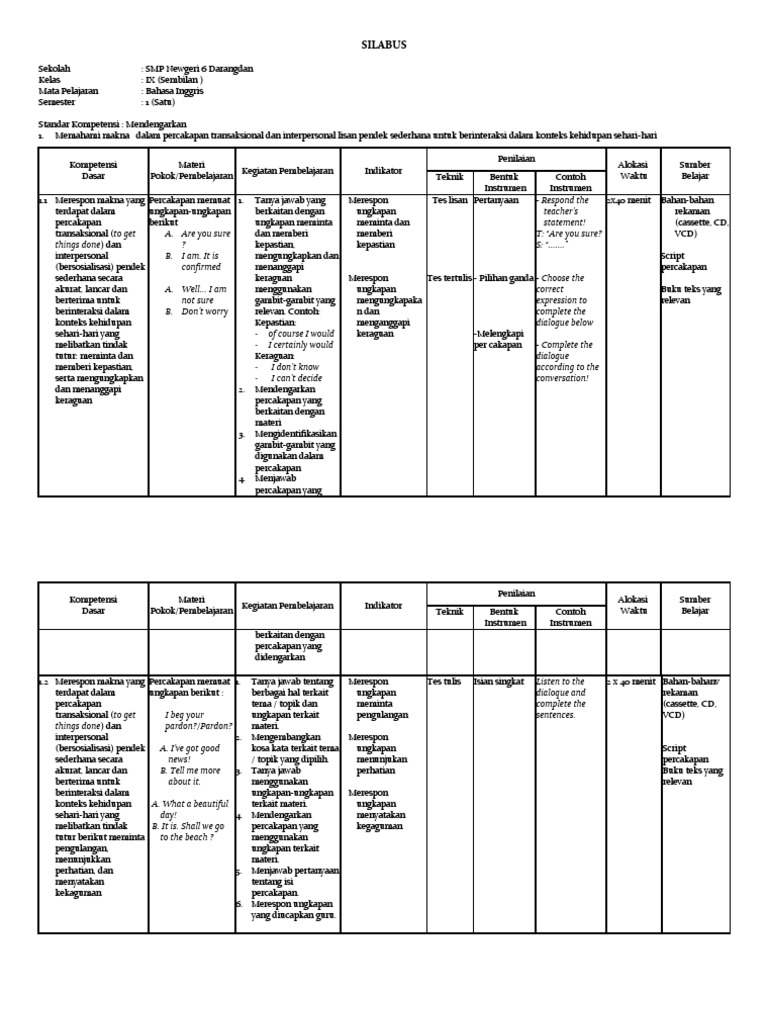 Perangkat pembelajaran khususnya silabus merupakan perangkat pembelajaran yang sangat penting bagi seorang guru mata pelajaran. Rpp kelas 7 bahasa inggris smp/mts kurikulum 2013, tahun pelajaran 2014/2015, silakan download. Silabus bahasa indonesia kelas 8 smp/mts. Demikianlah uraian singkat mengenai rpp, silabus, prota, prosem, pemetaan, kkm, sk&kd bahasa sunda. Silabus pembelajaran kelas viii smp/mts †bahasa inggris.